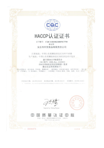 公司產(chǎn)品通過(guò)HACCP,BRC,IFS認證HACCP認證BRC認證IFS認證